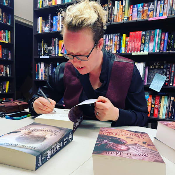 Krystle Matar has been writing for a long time, but things got serious when Tashué Blackwood walked into her life, an amber-eyed whirlwind. Her debut, Legacy of the Brightwash, is a SPFBO Finalist, an Indie Ink Award Finalist, a BBNYA Finalist, and an r/Fantasy nominee for Best Debut and Best Indie.
